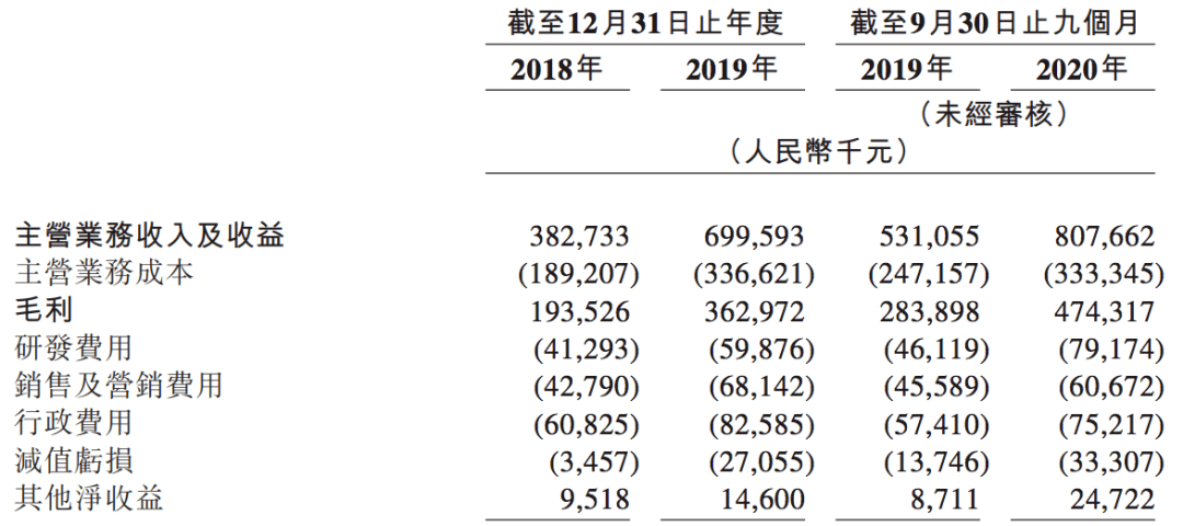 支出方面,2018年、2019年,联易融的营业成本分别为1.89亿元、3.37亿元。其中,研发费用与销售及营销费用相当,分别约占总成本的22%,略低于同期的行政费用。2020年前三季度,其营业成本为3.33亿元。