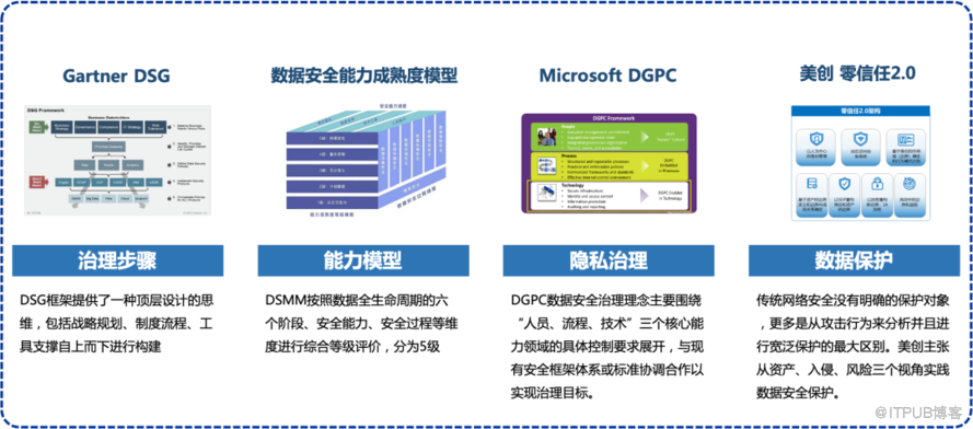 基于十余年数据安全领域研究,美创科技充分汲取Gartner数据安全治理框架(DSG)、Microsoft数据安全治理框架(DGPC)、DSMM数据安全能力成熟度模型、以及零信任2.0数据安全架构,形成一整套可落地实践的数据安全治理服务解决方案,并在实践中不断优化,让数据安全治理这项复杂而系统的工程,在不同行业、不同场景中有效落地。
