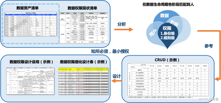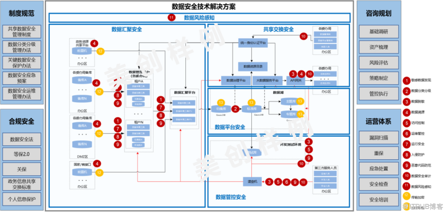 数据内控合规阶段:通过敏感数据发现、数据动/静态脱敏、数据库日志审计、权限管控和数据资产保护、身份鉴别(人、终端、应用)、高危操作防护、访问控制、特权管理等,加强内部安全管控;
