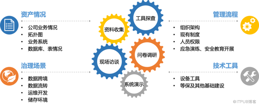 采用资料收集、问卷调研、现场访谈、系统演示和工具探查的方式,全面了解数据安全管理现状(如:组织架构、数据安全相关的政策、制度和规范、业务特征、网络拓扑、数据存储情况等),明确主要痛点问题,提炼出数据安全建设的总体目标、主要方向和具体工作思路。