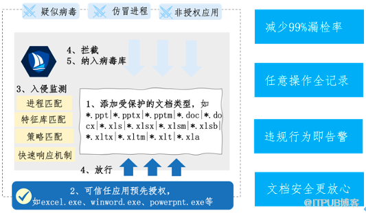 ,如word文档只能被Office或WPS写入更新。系统内置众多缺省文档后缀类型,支持主流文档格式类型,也可根据独立文件名、后缀和目录提供灵活配置。