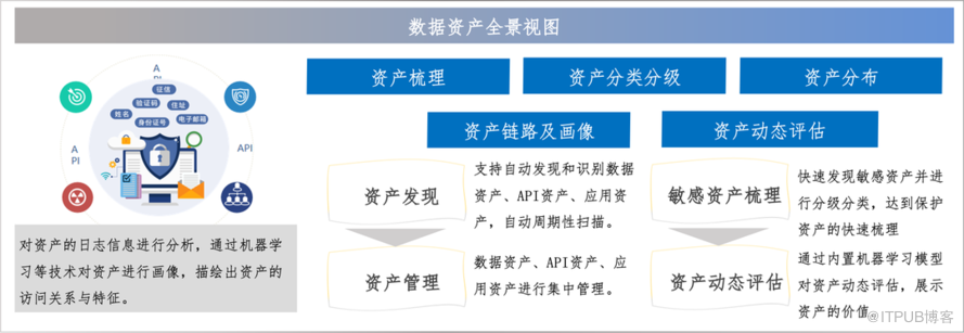 Ø 形成数据资产全景视图 “做到心中有数”:对数据、应用、和API等资产进行智能数据收集和自动化梳理,形成数据资产全景视图,采集业务动态访问过程中的流量进行智能涉敏分析,形成数据流转视图。