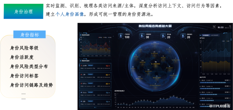 Ø 建立个人身份画像 “做到人员可控”:实时监测、识别、梳理各类访问来源/主体,深度分析访问上下文、访问行为等因素,建立 个人身份画像 ,形成可统一管理的身份资源池。