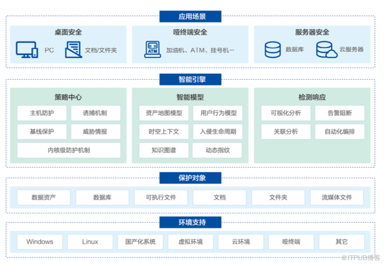 以建设数智安全大脑为中心,集成 身份认证、 数据脱敏 、权限管理、访问控制、 勒索防护 、 审计溯源 等数据安全保护能力, 实现 资产全局管理、身份全局管理、安全任务与策略集中管理 和统一调度 能力 ,帮助实现 资产全域可管、风险全域可视、策略全域联动 。