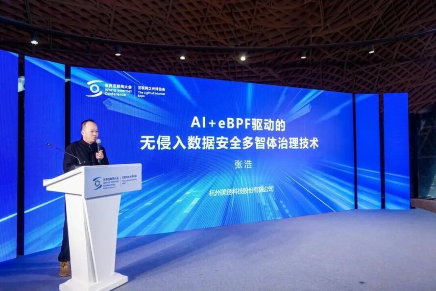 11月6日,2025年世界互联网大会乌镇峰会召开,“互联网之光”博览会同期举行,杭州美创科技股份有限公司(以下简称“美创科技”)CAIO张浩发布 基于AI+eBPF驱动的无侵 入数据安全多智体治理技术 ,提供数据安全治理新范式。
