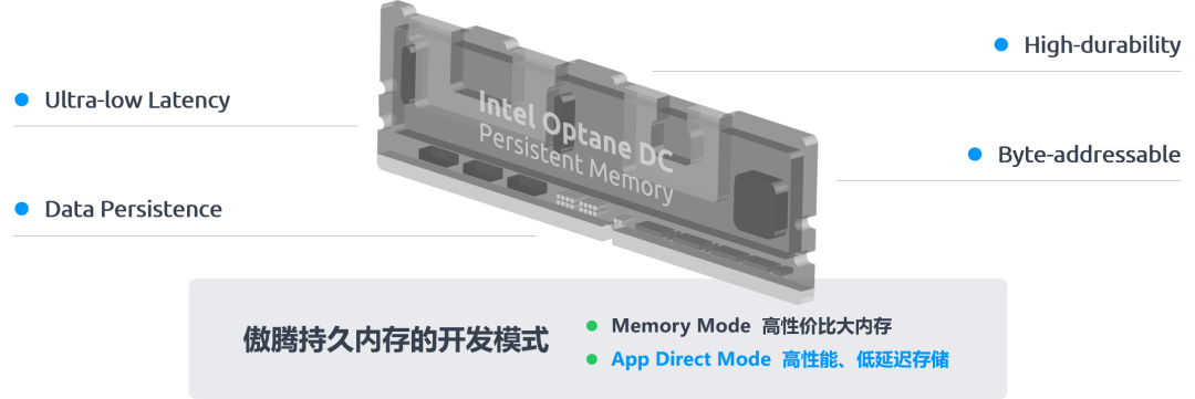 英特尔傲腾持久内存在内存和 SSD 之间新增加了一个存储层级,具备像内存一样的超低访问延迟,超高寿命与可靠性,同时还具备持久化存储和按字节访问的能力。在 App Direct 模式下,特定的应用程序可直接访问由英特尔傲腾持久内存带来的独立持久内存资源。