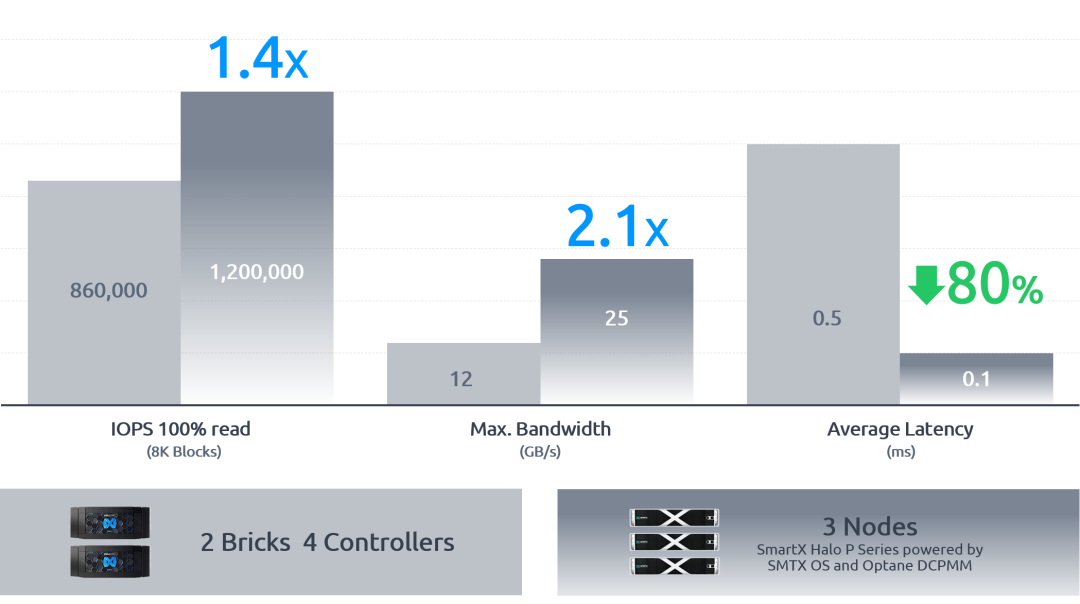 2020 年 6 月 17 日,北京——超融合中高端市场领导者北京志凌海纳科技有限公司(以下简称 “SmartX”) 正式发布基于核心软件 SMTX OS 与英特尔® 傲腾™ 持久内存的高性能、低延迟超融合解决方案与SMTX Halo P系列一体机。SmartX 在业内首次将英特尔傲腾持久内存以App Direct Mode (应用直接访问模式),并作为核心组件用于超融合解决方案中。与此同时,通过对计算虚拟化、存储网络以及存储介质的端到端优化,以有限的计算资源获得业内领先的高性能与超低延迟服务器虚拟化存储性能。在集群测试中,只需要 3 个节点P系列一体机,即可达到 120万的 IOPS ,同时,应用端延迟保持在 100us 以下。