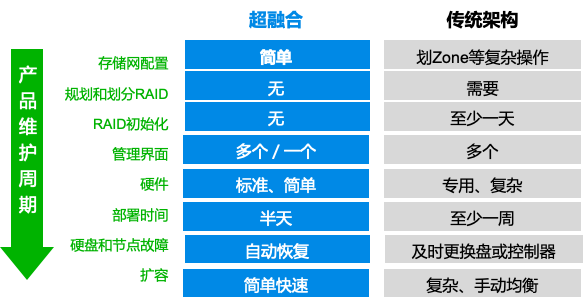 不同产品的局部升级,超融合架构对IT基础架构带来的提升是全面的,以下讲逐一解释。