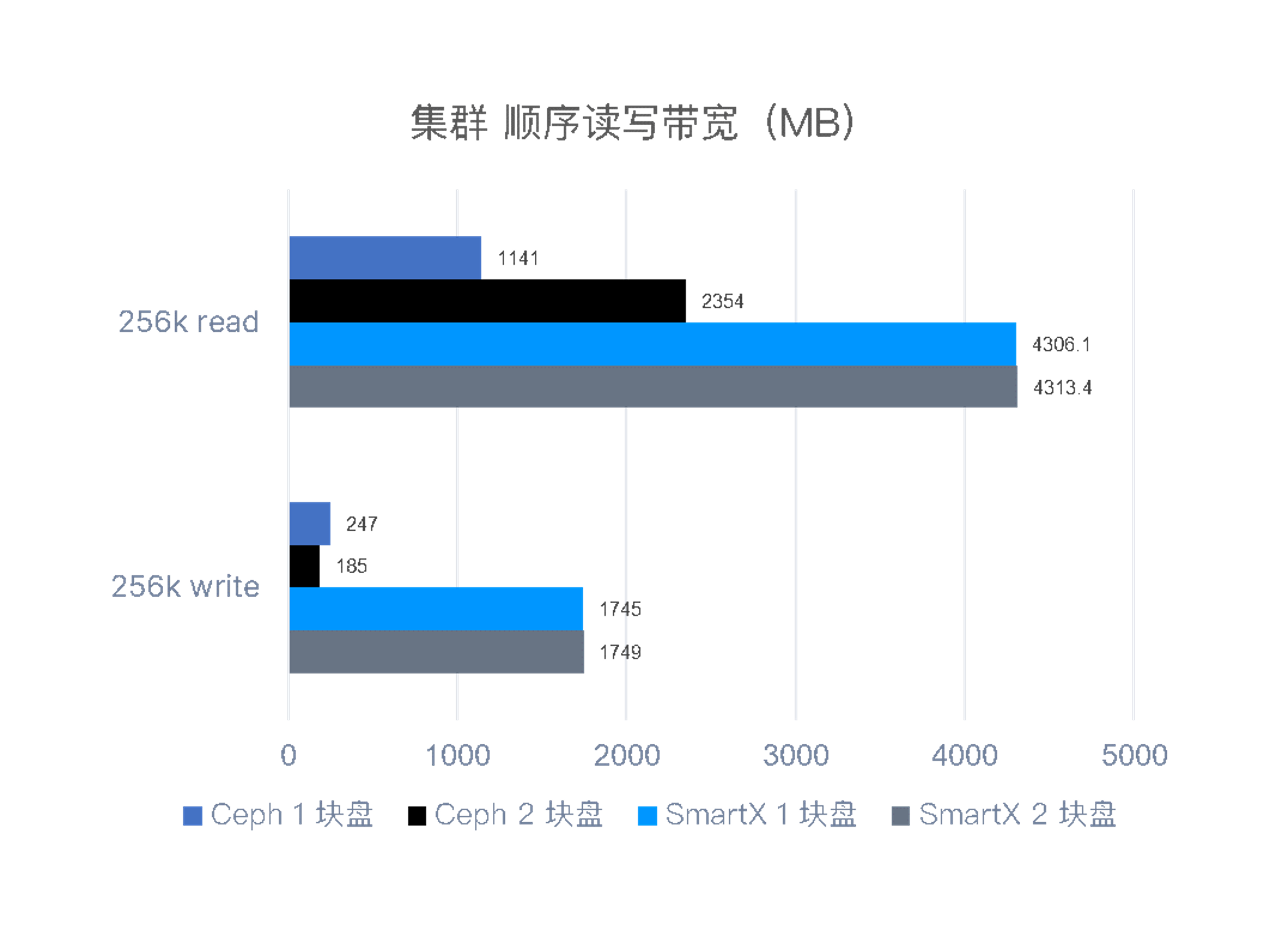 b、单虚拟机和集群(4 节点)256k 顺序读写性能