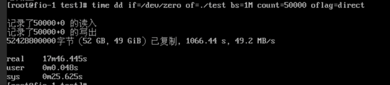 测试参数:dd if=/dev/zero of=./test bs=1M count=50000 oflag=direct