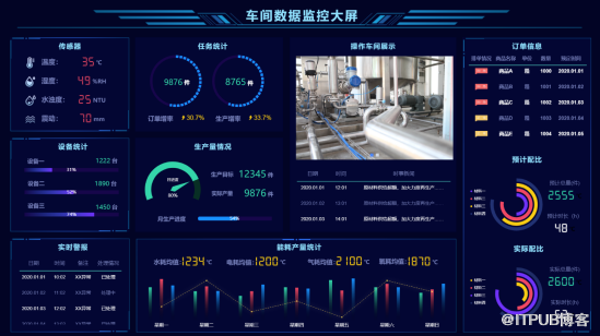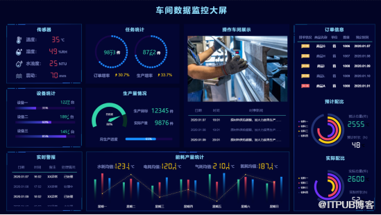 背景色也选用了深色系,在之前的文章中也提及到,一般我们常见的报表颜色都以蓝色为主,蓝色不仅具有沉稳的特征,而且在商业中强调科技,用蓝色来制作报表是一款怎么样都不会出错的颜色。