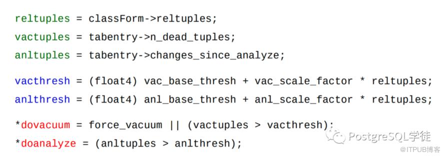 这个问题其实可以拆解为两个问题,第一个即为什么表没有触发 vacuum。这个问题老生常谈,默认的触发阈值是 autovacuum_vacuum_scale_factor * reltuples + autovacuum_vacuum_threshold,autovacuum_vacuum_threshold 默认值是 50,主要是为了预防小表频繁触发而设置的最低水位线,所以假如表增删改的数量超过了 20% ,就会触发 vacuum,当然实际情况还要取决于是否有空闲 worker,是否能获取到 ShareUpdateExclusiveLock 等等。