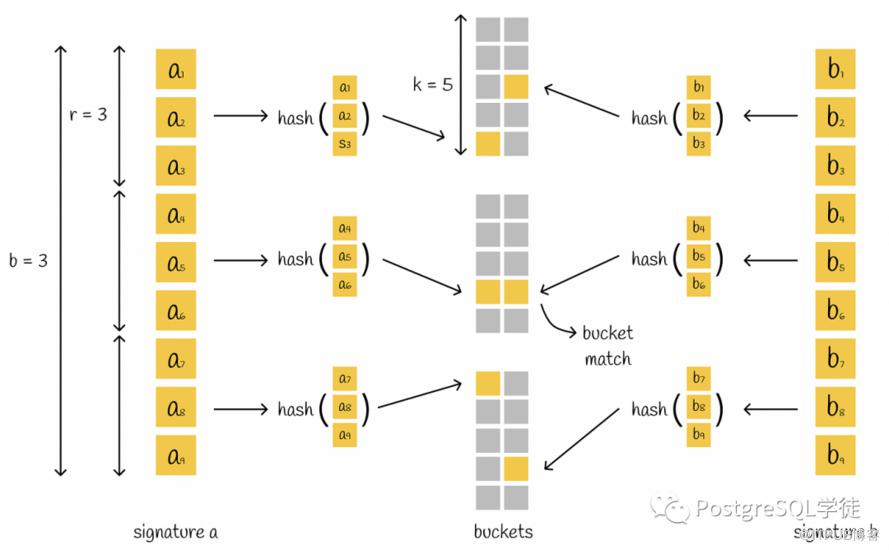 除了向量聚类之外,还有一种——位置敏感哈希 (Locality-Sensitive Hashing),这种哈希方式反其道而行之,力求增大"碰撞"的概率,这样的话哈希值一样的向量就被分到了一个 bucket 中,越相似的向量发生"碰撞"的概率就越高,通过这种方式找到相似的向量。