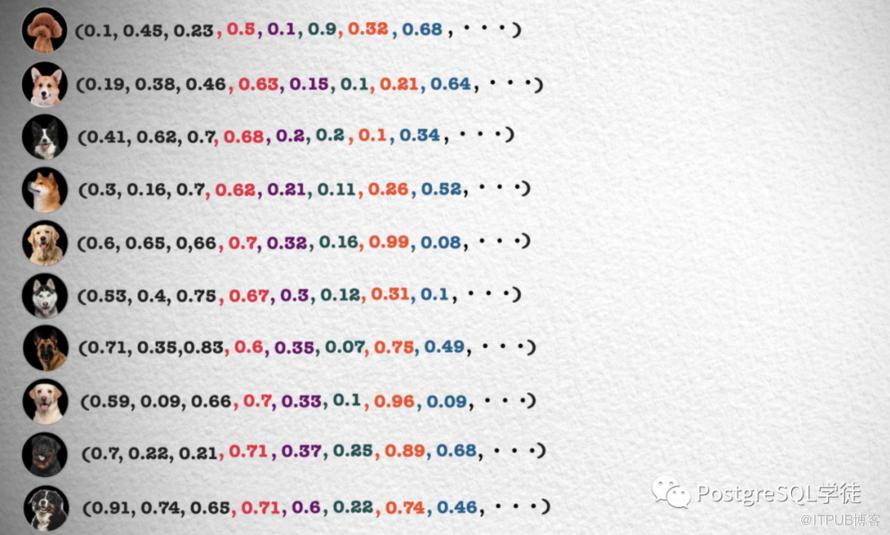 在提及向量数据之前,我们先思考一个问题,为什么我们可以在生活中区分不同的物品和事物?比如看到一个动物,我们可以分辨出是猫还是狗,看到一个人可以分辨其是女性还是男性。如果从理论角度出发,这是因为我们会通过识别不同事物之间不同的特征来识别种类,例如分别不同种类的小狗,就可以通过体型大小、毛发长度、鼻子长短等特征来区分。