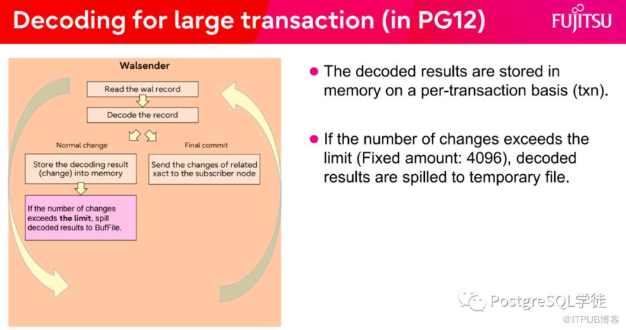在 13 以前,数据库只会为内存中的每个事务至多保留 4096 个更改 (max_changes_in_memory)。如果有一个非常冗长的大事务,其余的更改会作为溢出文件溢出到磁盘,也就是我们看到的那一些 spill 文件。