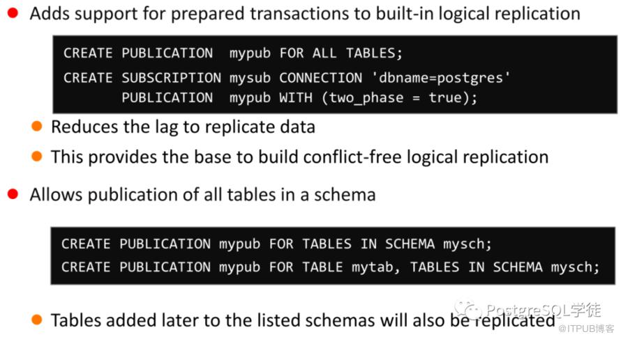 而在 15 版本里,主要是对逻辑复制功能方面进行了增强,比如 row filter