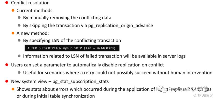 另外还有一个很方便的特性,便是 skip lsn,直接在订阅端指定要跳过的位点,这就要方便多了。