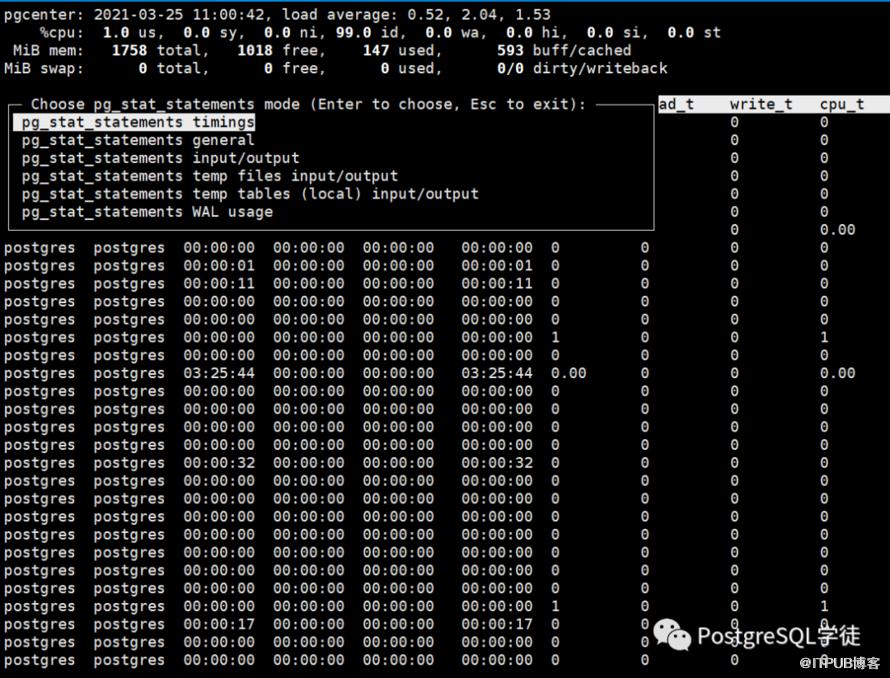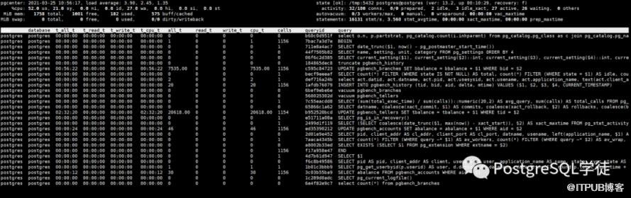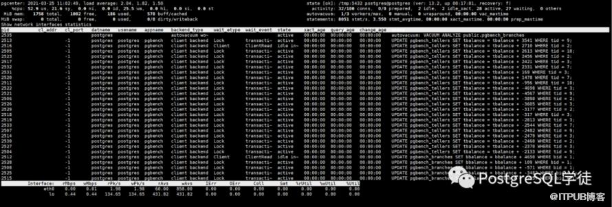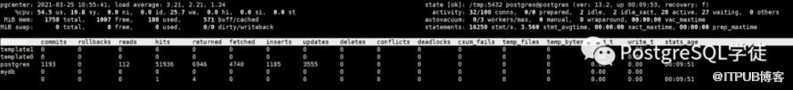 不多介绍,pgCenter is a command line admin tool for PostgreSQL.,直接看效果。