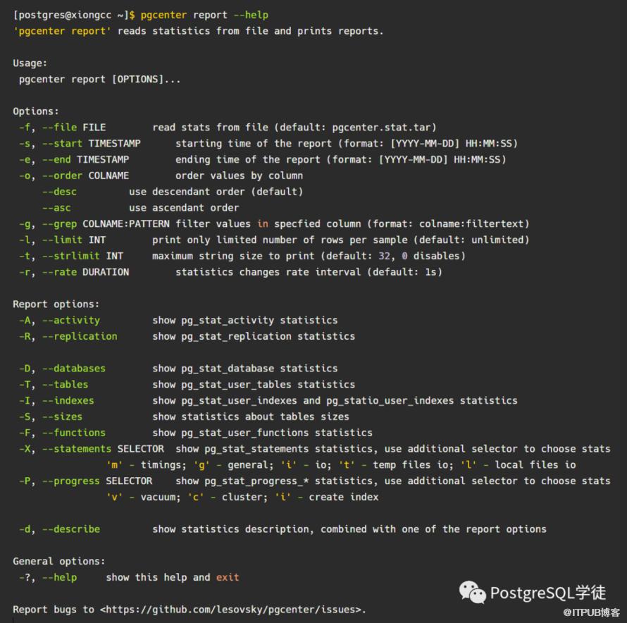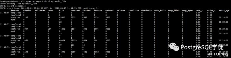 比如分析数据库的状况,pgcenter report -D -f myresult_file