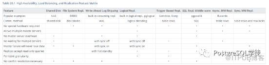 官网上这一块对各个方案做了一个简单的比较,High Availability, Load Balancing, and Replication Feature Matrix