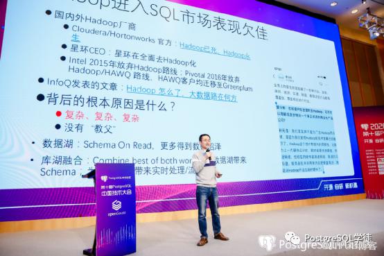期间也见到了不少大牛,诸如digoal、唐成、海龙等一直活跃在PG社区的大牛,也有跨界大佬白鳝的给力分享,鄙人也挑选了几场个人感兴趣的话题听了一下,简单分享一下个人的拙见。