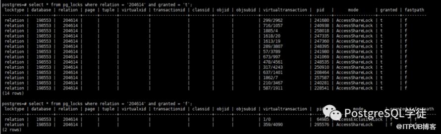 startup回放进程想要在表204614上获取一个AccessExclusive Lock,但是加锁失败,也就是上图中的granted = 'f'。