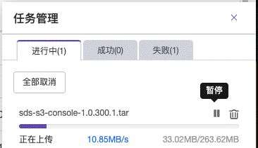 XSKY S3 Console可灵活控制数据的上传下载等传输并发,默认支持分段上传及并发设置,提高数据传输效率。但在使用S3的分段上传功能上传文件时,文件会被切分成许多碎片(Part)上传到存储桶中,最后再通过完成接口将碎片组合成完整的文件。