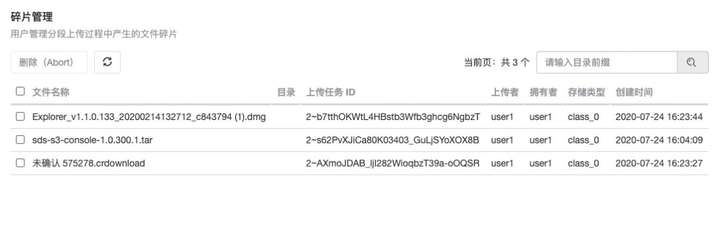如上图可通过管理界面查看到当前桶中上传文件过程中残留的碎片,对桶中不必要的碎片进行清理,提高存储利用率,同时提高列出桶中对象的效率。
