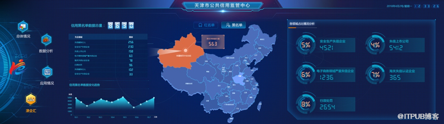 通过综合性的展示大屏,将天津市信用数据的整体情况进行了全景展现,通过各种指标的快速聚合计算,实现了跨多部门数据的联动应用。有效提升了信用相关数据的整合能力,为复杂决策工作提供有力支持。
