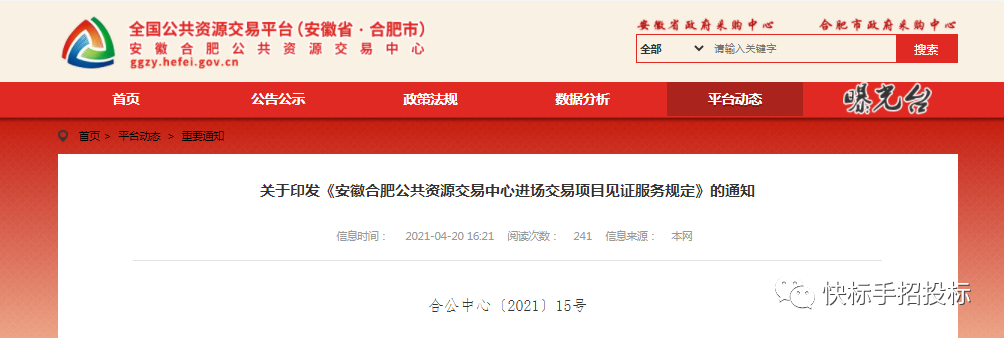 合肥公共资源交易中心印发《安徽合肥公共资源交易中心进场交易项目见证服务规定》