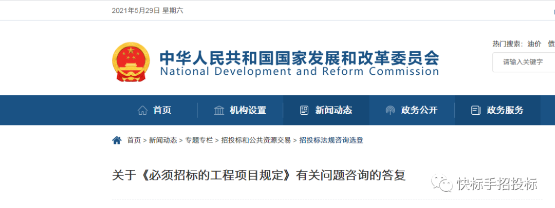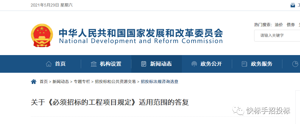 近日,中华人民共和国国家发展改革委在其官方网站对招标投标行业中的一些问题进行了集中性答复,其中针对