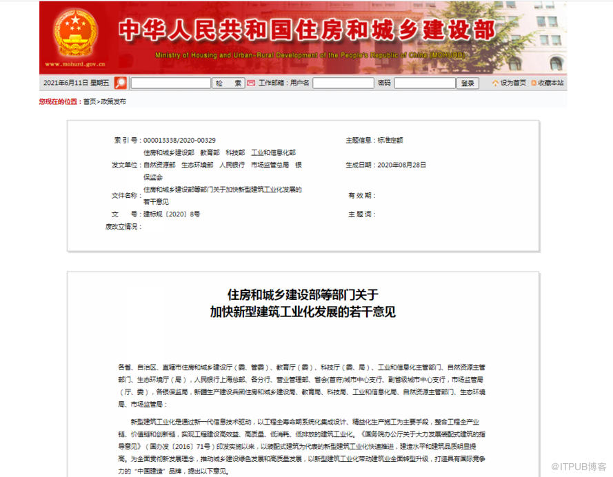 2020年08月28日,住房和城乡建设部、教育部、科技部、工业和信息化部、自然资源部、生态环境部、人民银行、市场监管总局、银保监会联合印发《关于加快新型建筑工业化发展的若干意见》,意见指出: 大力推行工程总承包。 新型建筑工业化项目积极推行工程总承包模式,促进设计、生产、施工深度融合。