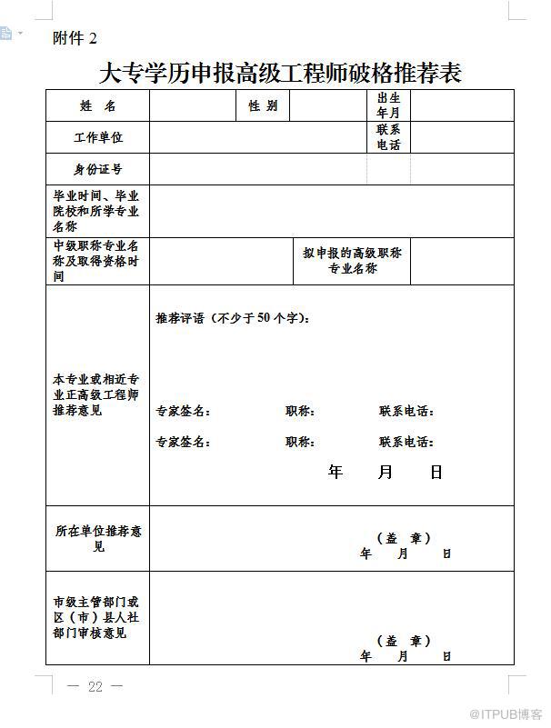 (大专学历申报高级工程师破格推荐表)