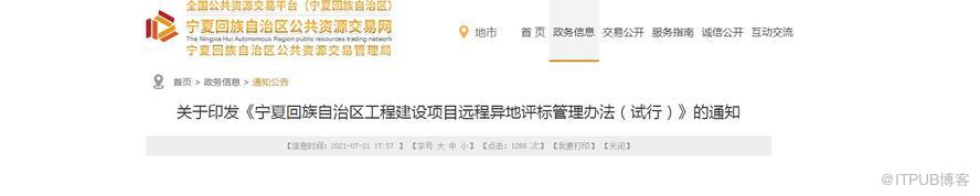 7月21日,由宁夏自治区发展改革委牵头,联合自治区住房城乡建设厅、交通运输厅、水利厅、公共资源交易管理局制定的 《宁夏回族自治区工程建设项目远程异地评标管理办法(试行)》(下面简称《管理办法》)正式发布施行。