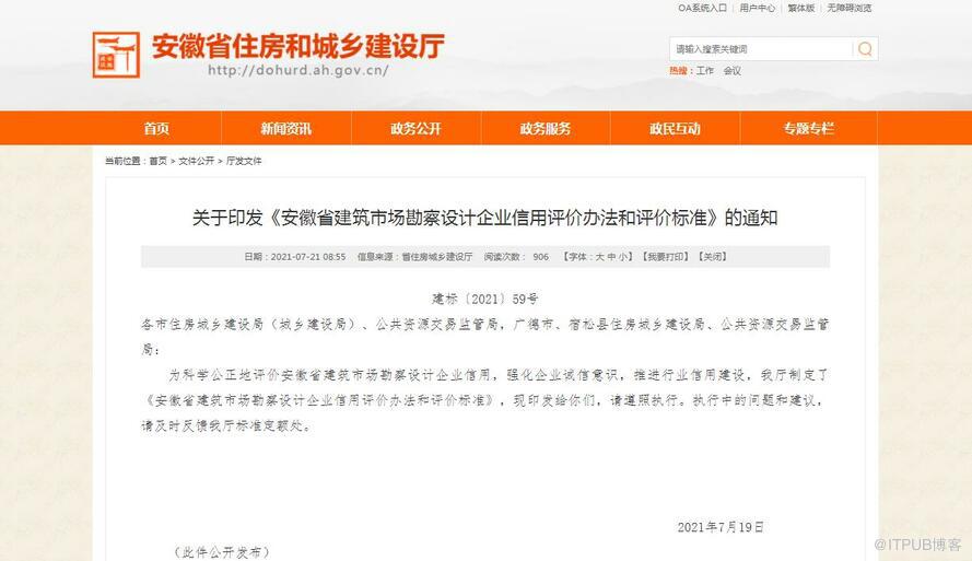 为了强化企业诚信意识,推动行业信用的建设,7月21日,安徽省住房和城乡建设厅发布 《关于印发<安徽省建筑市场勘察设计企业信用评价办法和评价标准>的通知》。