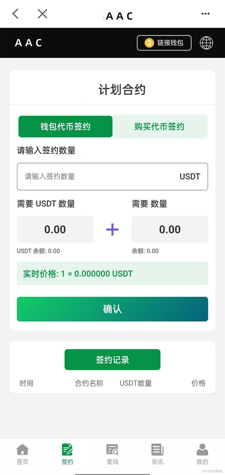 l 签约模块:是合约入 √金,按金本位平台代√币+USDT组合入√金,可选择钱包或贝勾买代√币两种签约方式,如果当用户参与合约后,会显示当前用户入√金记录,可随时查看;