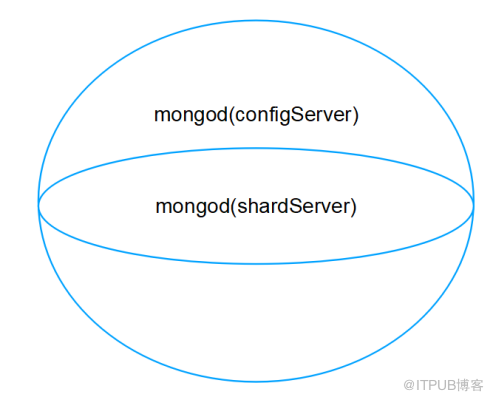 configServer 和 shardServer 各自支持的命令范围类似于下图包含与被包含的关系,小椭圆代表 shardServer ,大圆代表 configServer :