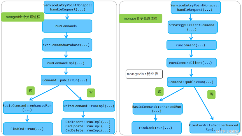 2) mongod 分片存储节点的 clase Find_cmd{} 、 class Getmore_cmd {} 、 class Write_commands{} 三个类中把 shouldAffectCommandCounter () 接口置为 false 。这三个类分别对应 mongod 存储实例的如下几个命令:“ find ”、“ getMore ”、“ insert ”、“ update ”、“ delete ”五个命令。