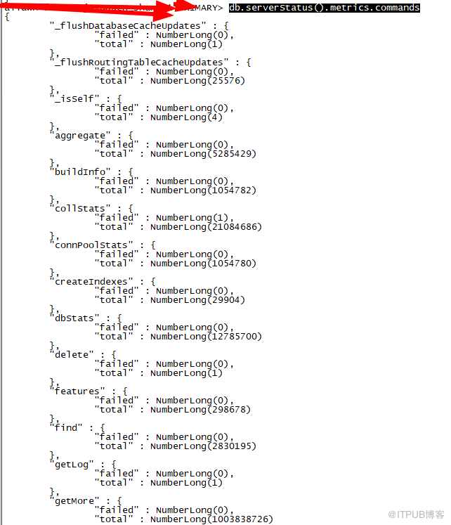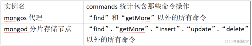 mongos 和 mongod 实例 commands 统计信息总结如下: