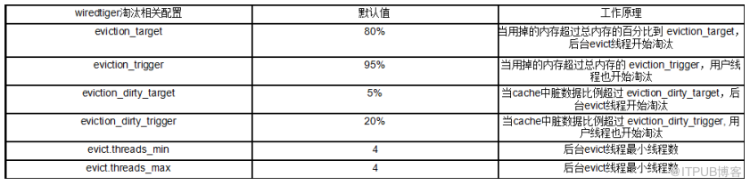 wiredtiger 存储引擎 cache 淘汰策略相关的几个配置如下 :