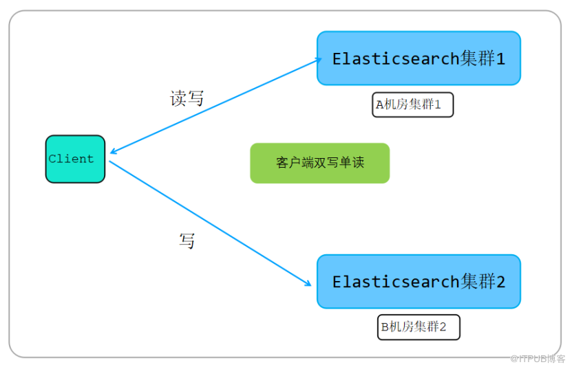 源ES 集群业务在两个机房各申请了一个集群,由业务自己通过双写的方式来保障数据一致性,当一个集群异常业务自己切流量到另外一个集群。