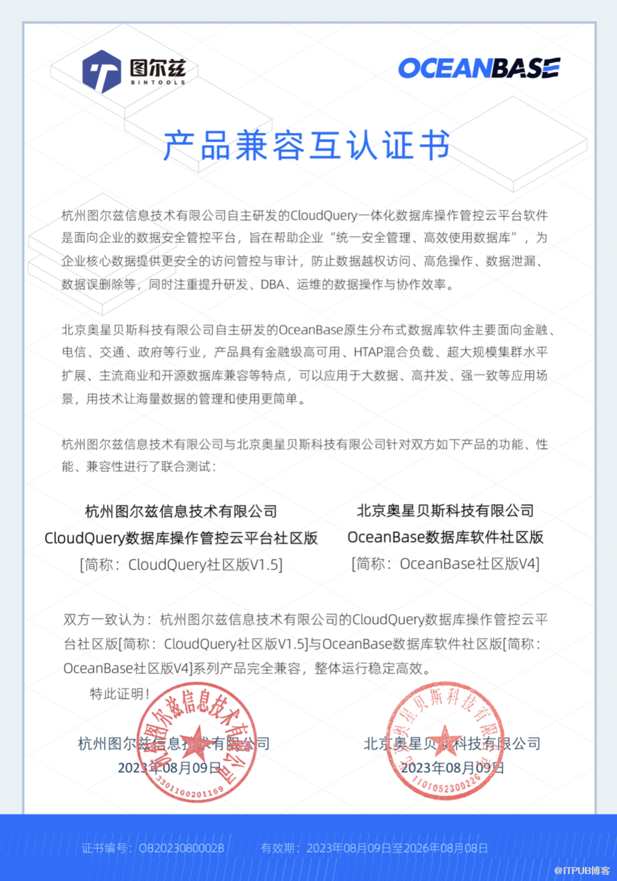 现阶段,CloudQuery 和 OceanBase 已经为不同行业的多家共同用户提供了优质的服务,包括但不限于某大型保险公司、某证券公司等。
