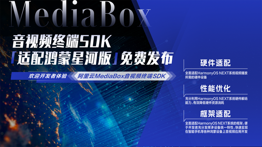 2024年1月,HarmonyOS NEXT 鸿蒙星河版系统开发者预览版开放申请,该系统将只能安装为鸿蒙开发的原生应用,而不再兼容安卓应用。对此,阿里云MediaBox音视频终端SDK产品已实现功能的鸿蒙化迁移和重构,全面适配鸿蒙系统HarmonyOS NEXT系统。