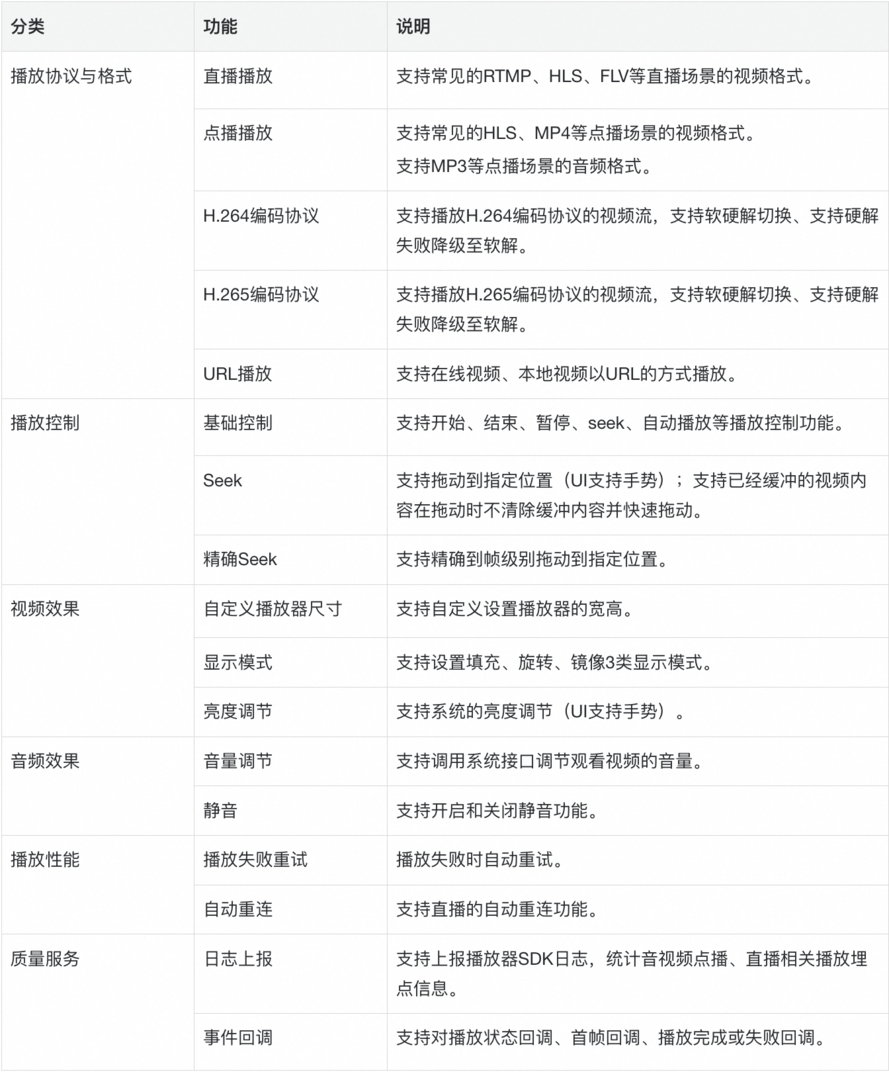 鸿蒙版本的MediaBox音视频终端SDK主要特性如下: