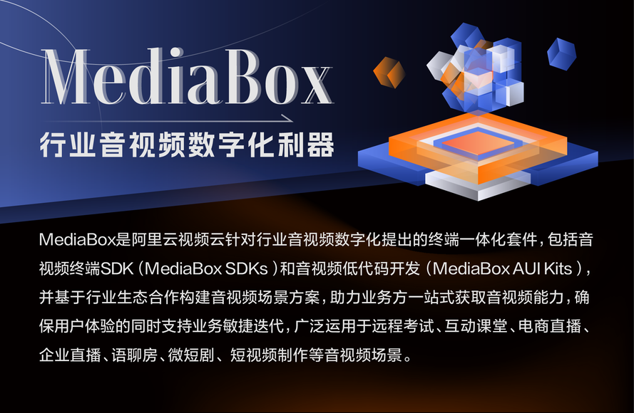 MediaBox是阿里云视频云针对行业音视频数字化提出的终端一体化套件,全面整合视频直播、实时音视频、视频点播、短视频创作、美化特效等全链路音视频能力。