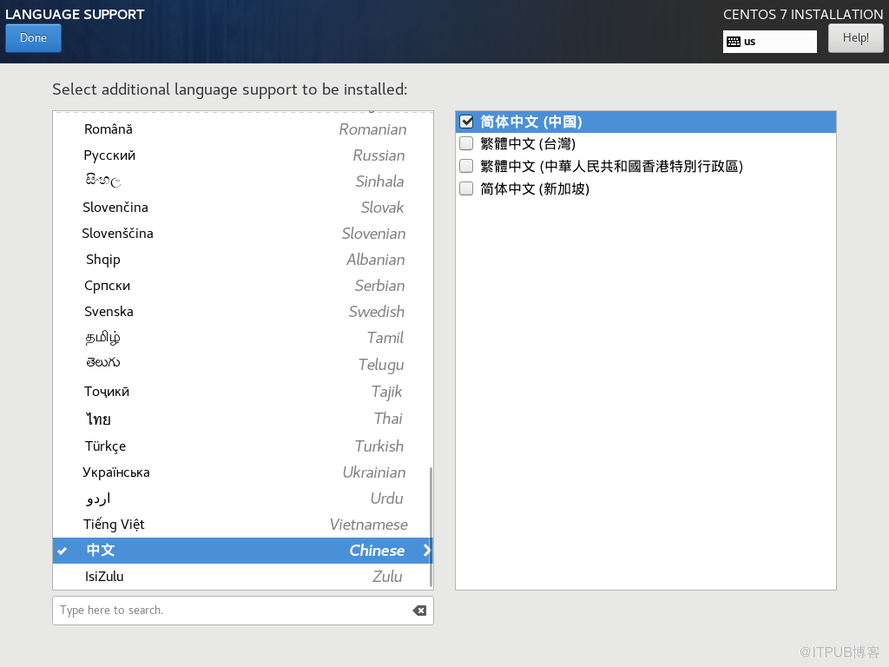 - 在 选项汇总界面 选择 Language Support 勾选简体中文支持