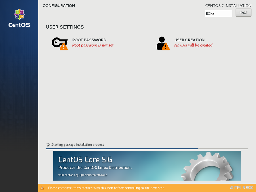 - 在 安装配置界面 选择 Root Password 进行ROOT用户的密码设置