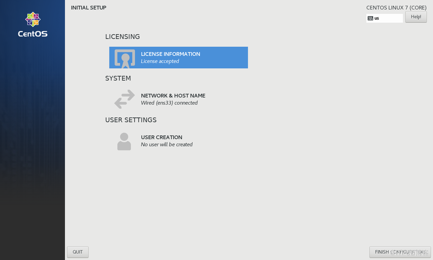 - 您也可以在这里点击 User Creation 进行普通用户创建,或登陆系统时创建,我们选择后者