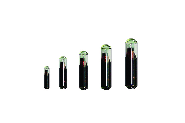 采用微型封装设计,在使用时植入动物皮下,尺寸约为米粒大小,由生物玻璃封装,具备良好的生物相容性,可长期稳定工作于宠物体内且不会造成动物排斥反应。常见尺寸为 2*12mm ,如科智牧 KEZMO 的 JY-DT212 植入式玻璃管标签,工作频率为 134.2kHz ,符合 ISO 11784/11785 国际标准,支持全球通用的宠物身份识别体系。芯片内存储唯一 ID 编码,通过 RFID 扫描设备非接触式读取,实现快速身份验证。