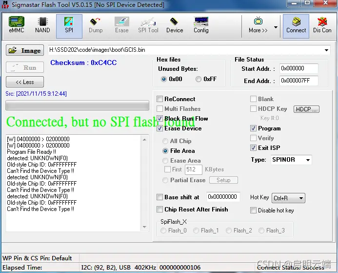 2、是否选择了正确的flash类型(例如spinor or spinand )。